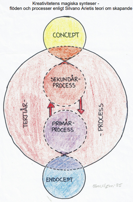 Silvano Arieti (1976) beskrev kreativitet som en effekt av människans tertiära mentala hjärnprocesser. I människans hjärna pågår ständigt ett flertal medvetna och omedvetna processer. Plötsligt kan det uppstå ett endocept, en rudimentär form av kognition, i människans psyke på basal hjärn- och primärprocessnivå. Endoceptet omvandlas sedan genom samarbete med högre hjärnfunktioner på sekundärprocessnivå till ett koncept. På så sätt kan en ny idé, en ny konstruktion, en ny bild, ett nytt ord eller inledningstonen till ny musik uppstå.